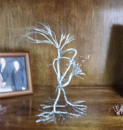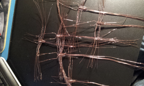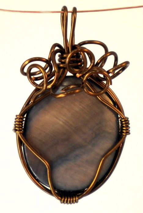 I have created several pieces of jewelry. The copper wire pieces take about four to six hours to design and make. Keep in mind that, with my large hands, the pieces average about one and a half inches.