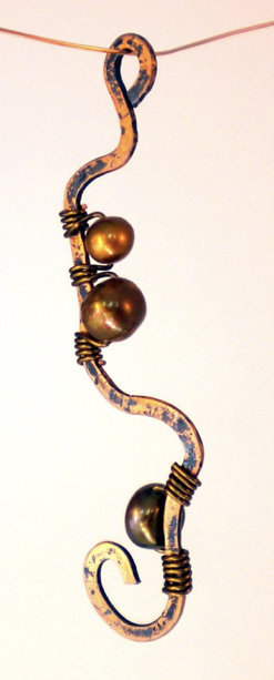 Squig: This was a test piece for a chemically induced tarnish effect. I decided to keep it as jewelry because it is simple yet unique.