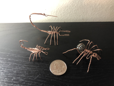 More insects shown with a quarter for scale. Admittedly, the scorpions are not my original design, but most of the spider is.